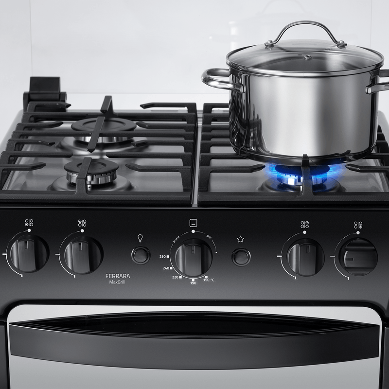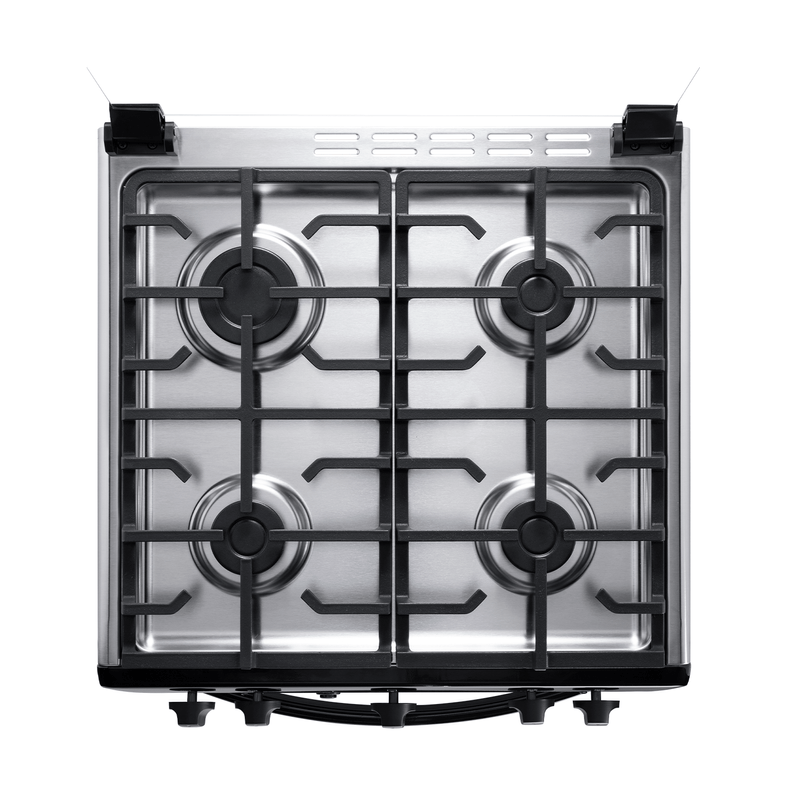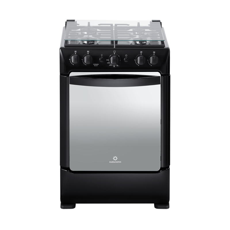 La cocina de gas con horno Ferrara de 4 quemadores de Indurama combina eficiencia, seguridad y diseño compacto. Sus quemadores sellados incluyen uno rápido y tres semi rápidos, ideales para diferentes tipos de cocción. El horno incorpora grill a gas, doble vidrio templado, luz interior y sistema de termoPrecisión, ofreciendo una experiencia de cocinado uniforme.