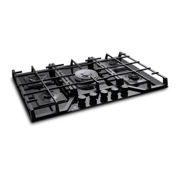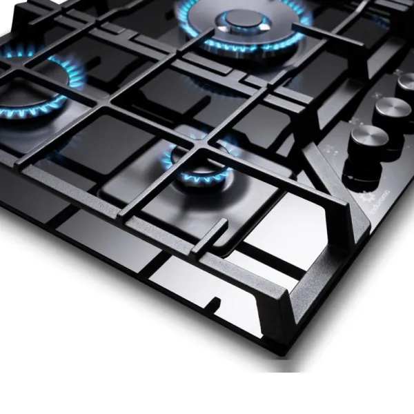 Encimera a Gas, 5 quemadores. Máxima potencia y eficiencia, quemador triple corona ultra-rápido. Tablero de vidrio templado UltraClear Glass. Mayor seguridad y confianza en tu hogar, sistema de quemadores sellados con válvulas de seguridad corta-gas.