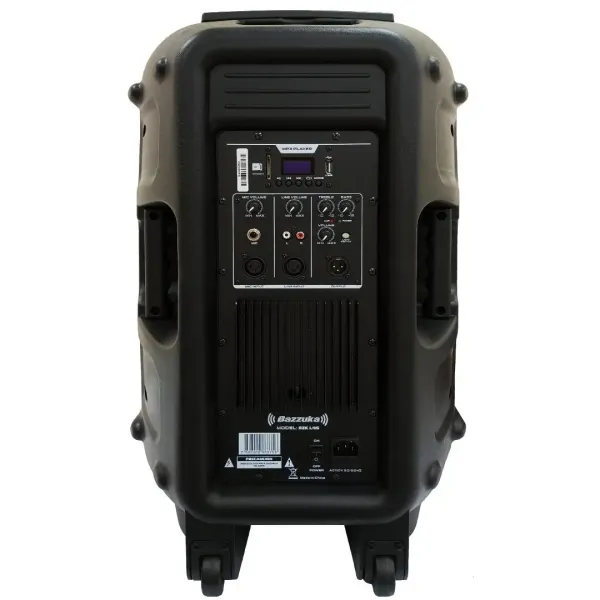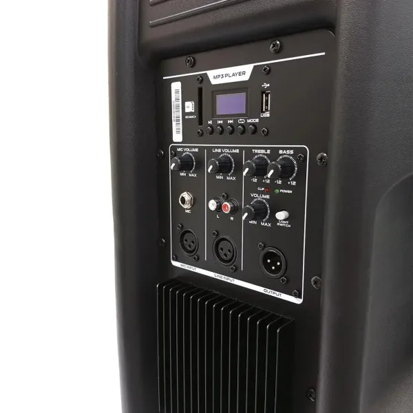 Posee una potencia de 60.000W PMPO, Incluye un woofer de quince pulgadas, Tiene conectividad inalámbrica Bluetooth, Dispone de sintonizador de radio FM.