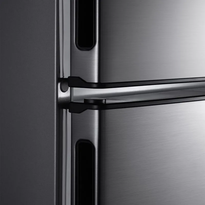En su estructura externa destaca la lámina inoxidable anti huella, que evita marcas visibles y facilita la limpieza. Las puertas son lisas con manija frontal integrada para una estética moderna y práctica. El compartimiento refrigerador incluye bandejas modulables de vidrio templado, balcones transparentes e iluminación LED que mejora la visibilidad. En el congelador, hay balcones amplios y una bandeja ajustable para adaptarse a tus necesidades. También incluye porta huevos.
