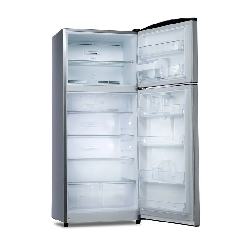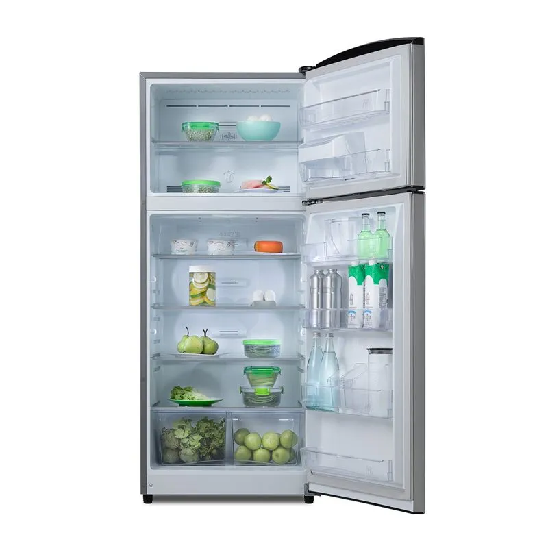 En el congelador de la refrigeradora Top Mount encontrarás una bandeja regulable de vidrio templado, balcones grandes transparentes y la conveniencia de hielo fácil en la contrapuerta.