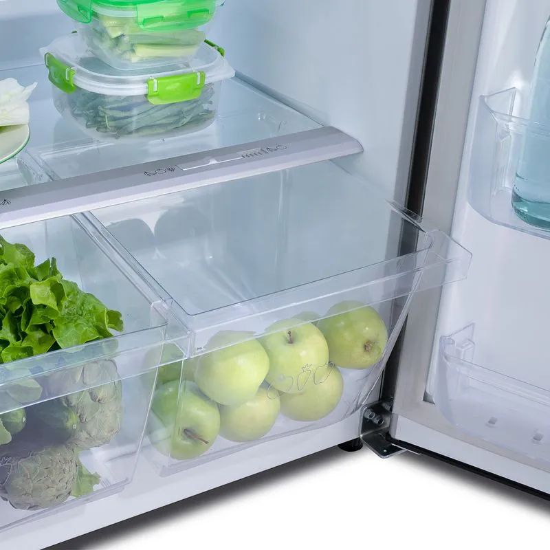 Además, esta refrigeradora posee bandejas regulables de vidrio templado, iluminación LED, legumbreras tipo canasta y balcones con una gran capacidad en su zona fría.