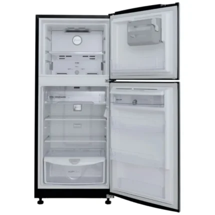 Con una capacidad de 408 litros y acabados elegantes en negro y croma, esta refrigeradora se integra perfectamente en cualquier cocina moderna, complementando tu decoración de interiores sin esfuerzo.